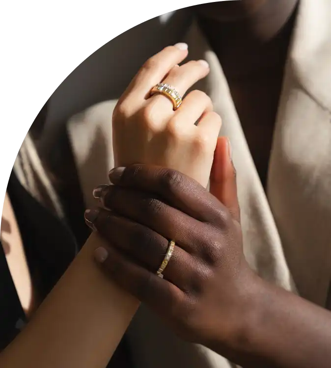 "My partner and I both got Flamond rings and we love how easily we can share our modular diamonds. On days where I feel like sporting a more classical look, she is happy to load her ring with diamonds and shine. What a great idea!"